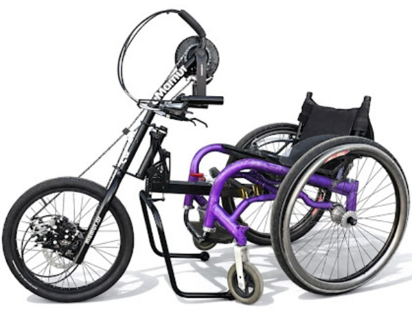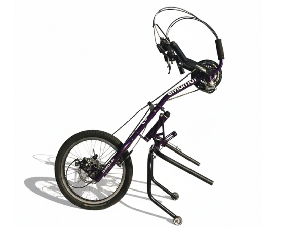 Transforma tu silla de ruedas en una bicicleta de mano en cuestión de segundos utilizando una nueva forma de movilidad activa, saludable y versátil. Un acople que te permitirá desplazar con mayor eficiencia, entrenar la musculatura superior y acceder tanto a recorridos urbanos como a caminos fuera del asfalto.