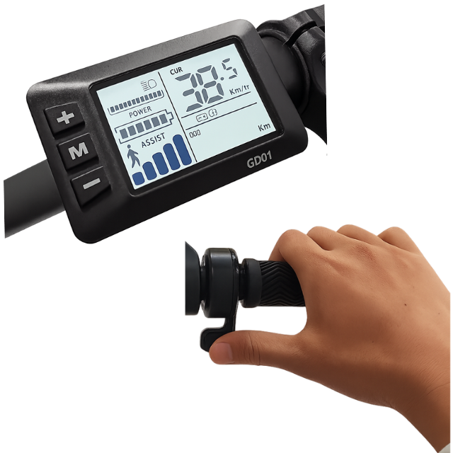 Mantiene la información vital clara y visible: velocidad actual, distancia total y nivel de batería restante, permitiéndote planificar cada trayecto con confianza.